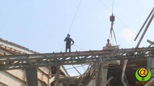 在已經(jīng)歪歪斜斜的噴霧干燥塔旁,記者看到四周到處散落著被臺(tái)風(fēng)吹下的鋼板和支架。工人們有的操作吊裝車,有的進(jìn)行高空作業(yè),他們抓緊時(shí)間拆除干燥塔及周邊配套的設(shè)備。企業(yè)負(fù)責(zé)人告訴我們,噴霧干燥塔是生產(chǎn)環(huán)節(jié)中的核心設(shè)備,它的癱瘓直接導(dǎo)致企業(yè)停產(chǎn)。目前這座干燥塔的拆除和重建需花費(fèi)350萬(wàn)元。