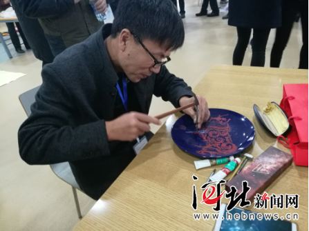 11月15日,河北省“唐工院杯”陶瓷藝術(shù)優(yōu)秀作品展暨陶瓷技藝大賽開幕,圖為現(xiàn)場刻瓷展示。