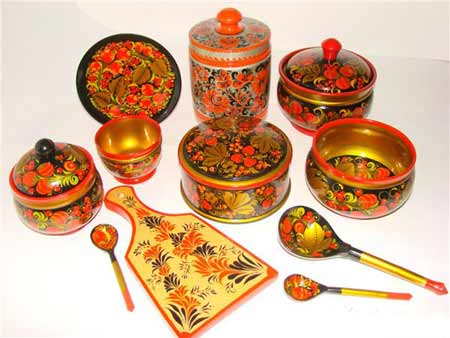 在俄羅斯的紀(jì)念品商店,經(jīng)常能看到這種繪有繁復(fù)植物圖案的木制工藝品,這種黑金版小清新就是有名的霍赫洛馬裝飾畫風(fēng)格。這種風(fēng)格的工藝品最早出現(xiàn)在下洛夫哥羅德州的小村莊霍赫洛馬,常見于各種木制餐具和家具,一般都是植物主題。不知大家有沒有發(fā)現(xiàn),俄羅斯的許多工藝品,哪怕內(nèi)容小清新,但都能做出土豪金的feel ~
