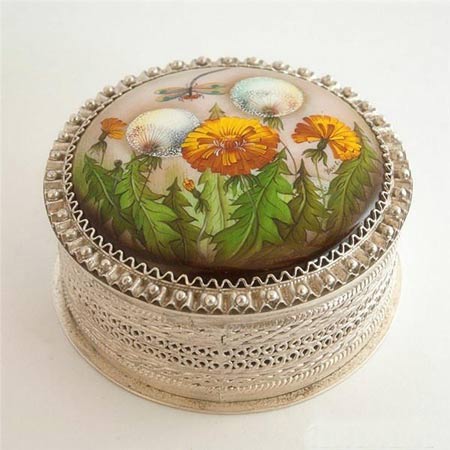 要說整個(gè)俄羅斯琺瑯工藝做得最好的地方,金環(huán)古城羅斯托夫說第二,沒人敢說第一。這里的琺瑯繪畫經(jīng)過幾個(gè)世紀(jì)的發(fā)展,已經(jīng)非常成熟。羅斯托夫的琺瑯多是帶花朵或風(fēng)景圖案的工藝品和首飾。