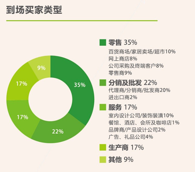展會(huì)主辦方之一勵(lì)展華博展覽(深圳)有限公司擁有25年辦展經(jīng)驗(yàn),舉辦了全國(guó)首屈一指的深圳禮品家居展,為上海尚品家居裝飾展打開華南市場(chǎng)奠定了數(shù)據(jù)基礎(chǔ)。上海尚品家居裝飾展在上海舉辦已有五年,通過每年對(duì)市場(chǎng)的探查與走訪,拓寬零售家居門店、咖啡酒店會(huì)所、電商等新興渠道,已經(jīng)擁有了超30萬(wàn)的龐大專業(yè)買家數(shù)據(jù)。2016年到場(chǎng)買家業(yè)務(wù)類型分析,展現(xiàn)了與深圳禮品展不盡相同的買家方向。