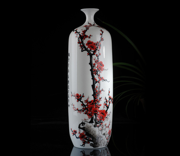 從大學(xué)畢業(yè)至今,醉心于具有不屈不撓、傲雪欺霜性格的國畫梅花。傾心研究出釉下彩“凹凸”畫法,經(jīng)過上百次試驗,克服了胎體色料、釉水不相容,色料易起泡,脫落的種種的困難,終于研究出晶瑩剔透,光亮照人的釉下“凹凸”梅花,使釉下彩梅花產(chǎn)生極具凸出感(凸出厚度達到一毫米)。打破釉下彩“寧平不凸,寧薄不厚”的傳統(tǒng)畫法,填補了釉下彩的技法的空白。