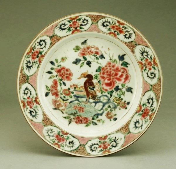 東莞市博物館 清 粉彩花鳥紋折沿盤