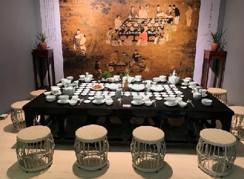 仿古瓷展區(qū)展出了包括宋景德鎮(zhèn)窯青白釉弦紋瓶、元青花魚藻紋大盤、明成化斗彩龍紋盤等200余件仿古精品,其中曾拍出2.3億天價的元青花鬼谷子下山大罐和2.8億港幣的明成化斗彩雞缸杯等高仿制品,維妙維肖,令人嘆為觀止。景德鎮(zhèn)的高仿瓷生產(chǎn)至少可以追溯到明代早期,如永樂御窯生產(chǎn)的仿龍泉青瓷,最典型的當(dāng)屬明成化、清康雍乾三代大量的仿宋官窯、哥窯和龍泉窯瓷器。此次展覽主要集中的是元明清三代的高仿瓷,從景德鎮(zhèn)有影響力的仿古瓷生產(chǎn)廠家遴選而來。記者還注意到,展區(qū)內(nèi)依據(jù)宋徽宗趙佶《文會圖》畫境布設(shè)的仿古青白瓷茶會場景別具一格,充分顯示了中華瓷茶文化相通相融的極致風(fēng)姿。