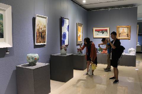 藝術(shù)瓷是景德鎮(zhèn)傳統(tǒng)陶瓷文化的重要組成部分。在藝術(shù)陶瓷展區(qū)內(nèi),68件瑰麗多姿的現(xiàn)代陶藝、凝練厚重的陶瓷雕塑、流光溢彩的瓷上彩繪,呈現(xiàn)出時代性、古典型、地域性和國際化的美學(xué)特質(zhì),帶來愉悅的視覺享受,其清脆激越與渾厚連綿的韻律之美讓人心馳神往、遐想無窮。王步、王希懷的青花斗彩《壽桃圖》,王錫良的天青釉開光《公園圖》,張松茂的粉彩《山高水長》等館藏藝術(shù)陶瓷精品也在現(xiàn)場與觀眾零距離接觸,展示了近現(xiàn)代景德鎮(zhèn)陶瓷藝術(shù)的獨(dú)特神韻。
