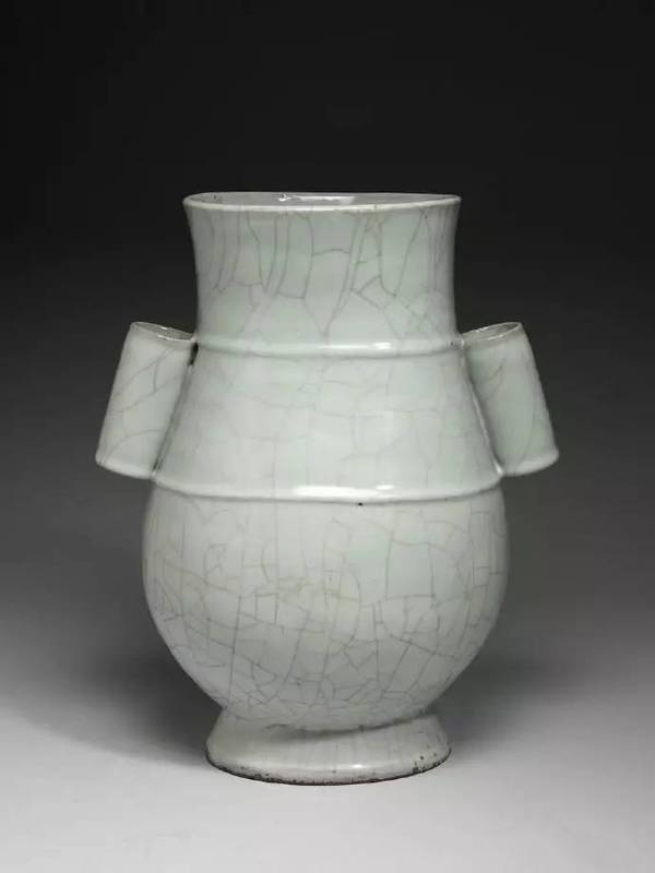 宋代官窯器的紋片有大小開片兩種,大開片紋痕長而粗壯,有的紋痕在瓷器上自上而下呈經(jīng)線走向一直到底,如一根牛毛一樣垂披于臀,因此有“牛毛紋”之稱。即使是小開片的瓷器,也不乏有幾條較長較粗的紋痕。紋痕的顏色以鱔血、魚籽黃、墨色、油灰居多,鱔血者為上品。