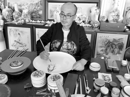 他是沈陽房氏陶瓷繪畫非遺傳承人