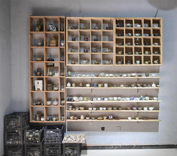 陶坊屋內(nèi)的儲物架上擺滿了呂錫良的陶瓷制品(8月1日攝)。 新華社記者 邵瑞攝