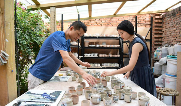 在陜西省西安市長安區(qū)韋曲鎮(zhèn)高家灣村,有一間由一對80后夫妻開設(shè)的“良子陶坊”。陶坊的男主人呂錫良在此創(chuàng)作陶瓷制品,他的妻子黃俊玲則負(fù)責(zé)銷售,兼做金繕修復(fù)工作。