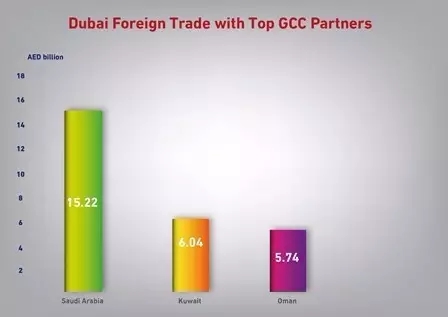 海合會(huì)和阿拉伯國(guó)家中,沙特蟬聯(lián)迪拜最大貿(mào)易伙伴,雙邊貿(mào)易額152.2億迪拉姆,同比增長(zhǎng)4.7%。