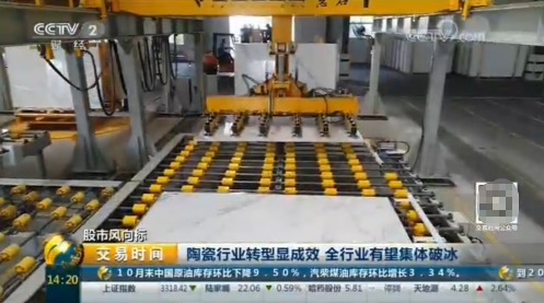 11月28日,央視財(cái)經(jīng)頻道《交易時(shí)間》欄目以“陶瓷行業(yè)轉(zhuǎn)型顯成效 全行業(yè)有望集體破冰”為題,聚焦國(guó)內(nèi)陶瓷行業(yè),把鏡頭對(duì)準(zhǔn)了行業(yè)轉(zhuǎn)型中具有引領(lǐng)性的企業(yè),展現(xiàn)了陶瓷行業(yè)轉(zhuǎn)型的成效和向好趨勢(shì)。