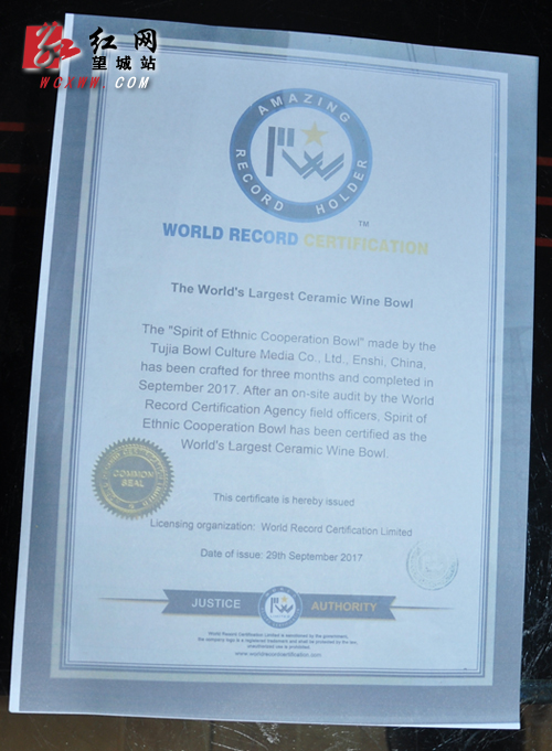 世界紀(jì)錄認(rèn)證機(jī)構(gòu)工作人員對(duì)“世界最大陶瓷酒碗”進(jìn)行官方認(rèn)證。高亮 攝
