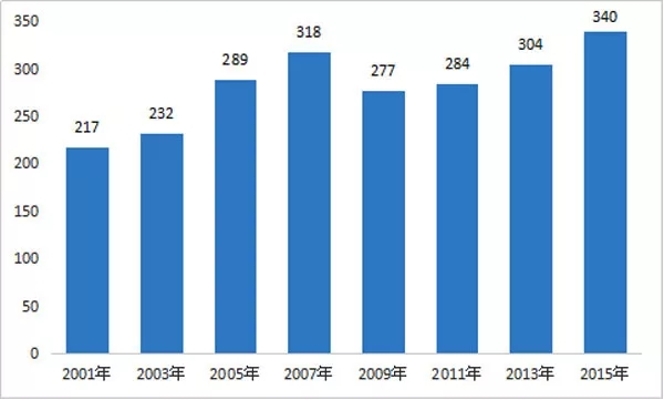 2001~2015年美國改善住房費用支出情況