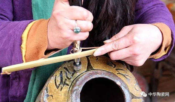 首先是要將破損的瓷器碎片拼接好,然后用弓和金剛鉆[收起] 湖北十堰市武當(dāng)山特區(qū)民間藝人鄭艷芳正在用傳統(tǒng)工藝——“鋦瓷”對瓷器進(jìn)行修復(fù)。