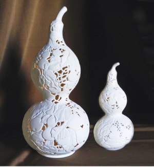 李春英的作品多為“滿花”樣式,寓意“圓圓滿滿”,符合中國(guó)傳統(tǒng)審美取向,它的雕工比較復(fù)雜,立體感強(qiáng),在完成過(guò)程中要克服很多困難。因每一件骨質(zhì)瓷都是獨(dú)一無(wú)二,既不能批量生產(chǎn),又不能迅速轉(zhuǎn)為普通消費(fèi)品,所以李春英的作品也是骨質(zhì)瓷藝術(shù)品中的佼佼者。