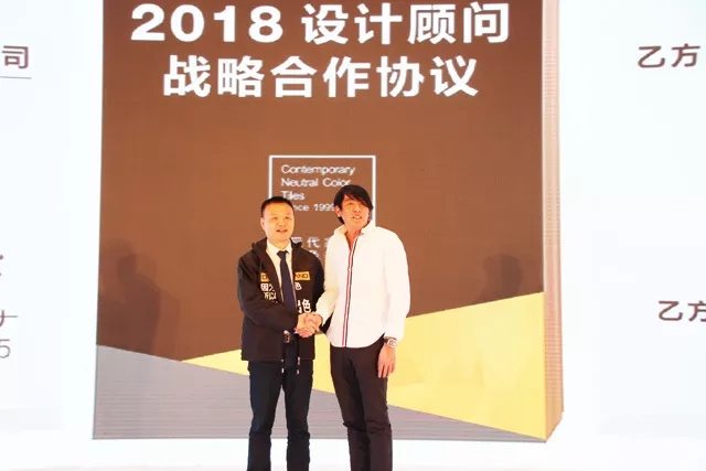 ▲廣東歐文萊陶瓷有限公司執(zhí)行總裁汪加武與新加坡PeterTay Studio設(shè)計(jì)機(jī)構(gòu)創(chuàng)始人PeterTay簽訂2018設(shè)計(jì)顧問戰(zhàn)略合作協(xié)議。