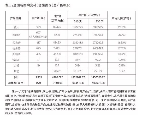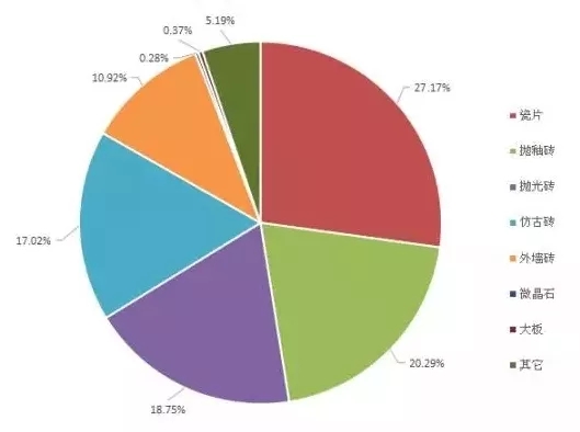 注:圖表中“其他”包括劈開磚、廣場(chǎng)磚、小地磚、耐磨磚、拋晶磚、薄板、陶土板、黑磚等產(chǎn)品。