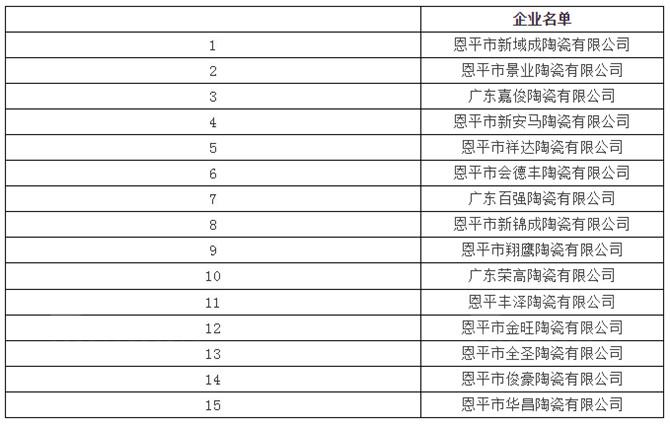 日前,江門市環(huán)保局發(fā)布了《2018年江門市重點(diǎn)排污單位名錄》。據(jù)悉,2018年廣東江門重點(diǎn)排污單位共294家,其中,水環(huán)境重點(diǎn)排污單位(224家),大氣環(huán)境重點(diǎn)排污單位(42家),土壤環(huán)境重點(diǎn)監(jiān)管單位(28家)。恩平的15家陶瓷廠被列入大氣環(huán)境重點(diǎn)排污單位名錄。