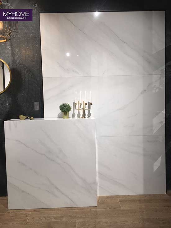 大理石瓷磚的明星產(chǎn)品當(dāng)屬一面云母白展示墻。它有著水晶般純凈透亮的白,又流淌著細(xì)膩柔和的紋理,質(zhì)地靈透,盡取天然。在燈光照射下質(zhì)感極佳,不僅清新潔凈,而且溫馨、暖意綿綿。