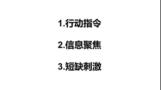 2.讓用戶在數(shù)秒內(nèi)做出決策,有三個(gè)辦法:給出行動(dòng)指令,信息聚焦和短缺刺激。