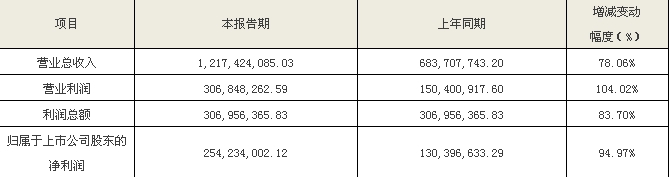 2017 年,山東國瓷功能材料股份有限公司實(shí)現(xiàn)營業(yè)總收入1,217,424,085.03.元,較上年同期增長78.06%;營業(yè)利潤306,848,262.59元,較上年同期增長104.02%;利潤總額306,956,365.83元,較上年同期增長83.70%;