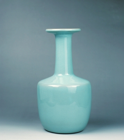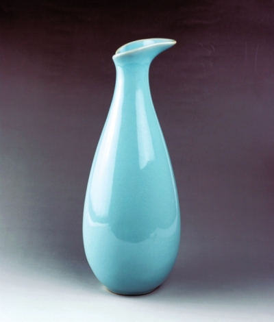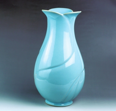 朱文立逐漸摸索出一整套汝瓷選材、制材、燒制、成瓷等技藝?yán)碚摵凸に圀w系,推出了一系列天青釉汝瓷藝術(shù)作品,如弦紋瓶、百合瓶、迎春瓶、花觚等,這些作品造型不一,但都釉體流暢,別致雅觀,既有北宋汝官瓷的韻致,又帶有明顯的朱氏風(fēng)格。其得意之作如意尊,造型古樸,簡(jiǎn)潔素雅,憨態(tài)可掬,沒有多余的紋飾細(xì)描,但又于輕巧中現(xiàn)端莊,于明雅中見深沉肅穆。其小巧之作如荷花碗,碗口曲線形似流水,宛如荷花綻放,自由舒展,似在輕風(fēng)中搖曳。按常理,他已功成名就,完全可以像其他陶瓷藝術(shù)家一樣,專注于把“朱氏汝瓷”推向市場(chǎng)。況且,他已經(jīng)失業(yè)了,小女兒才兩歲,全家僅靠他愛人微薄的工資度日。但朱文立心中已經(jīng)有了自己的奮斗方向,隨著對(duì)汝瓷研究的深入,他對(duì)汝官窯址是不是在清涼寺產(chǎn)生了疑慮。