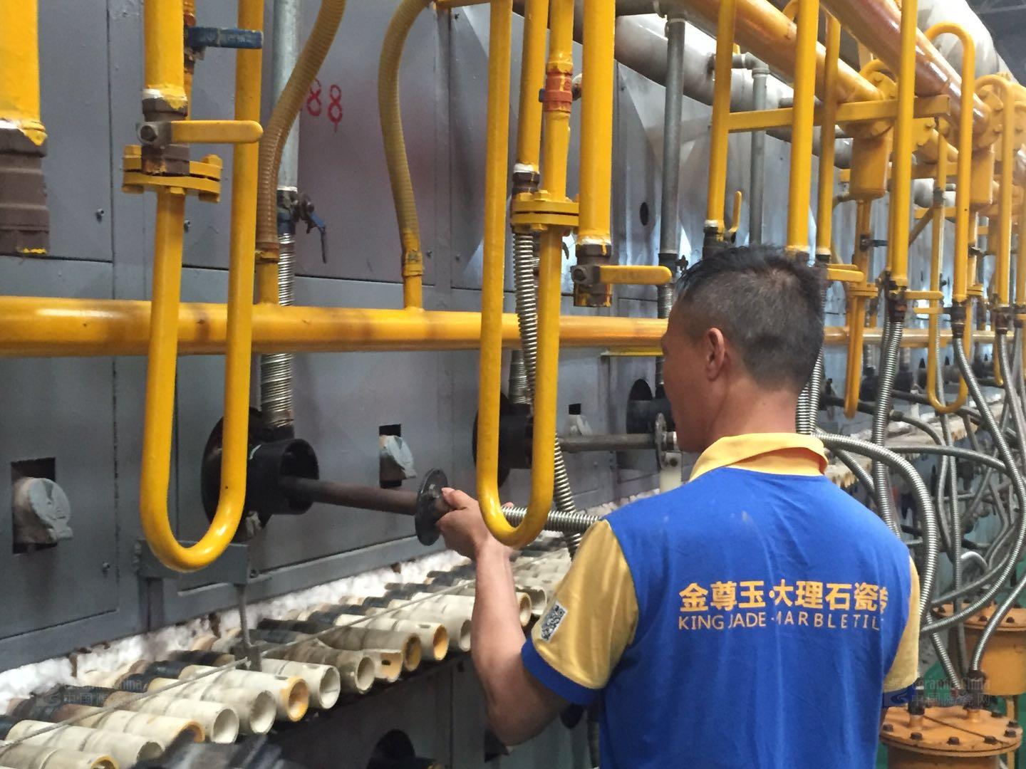 2018年3月28日,在金尊玉西樵生產(chǎn)基地,金尊玉大理石瓷磚董事長(zhǎng)南順芝攜意大利天工法拉利集團(tuán)代表人員在行業(yè)主流媒體的見證下舉行3號(hào)窯爐點(diǎn)火投產(chǎn)的點(diǎn)火儀式。這意味著金尊玉新一代大理石瓷磚生產(chǎn)線火紅開窯。同時(shí)也意味著,作為中國(guó)第一家引進(jìn)綠色工廠智能化儲(chǔ)坯系統(tǒng)的金尊玉,正式開啟自動(dòng)化生產(chǎn)。