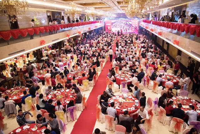 ▲祥達(dá)企業(yè)13周年慶典現(xiàn)場。據(jù)悉,祥達(dá)企業(yè)包了紅樹林大酒店一樓宴會廳和二樓所有包間。