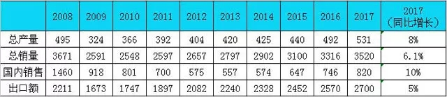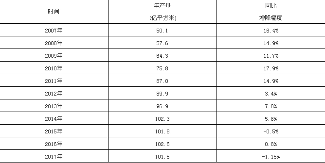 表3:2007年-2017年全國(guó)陶瓷磚產(chǎn)量統(tǒng)計(jì)