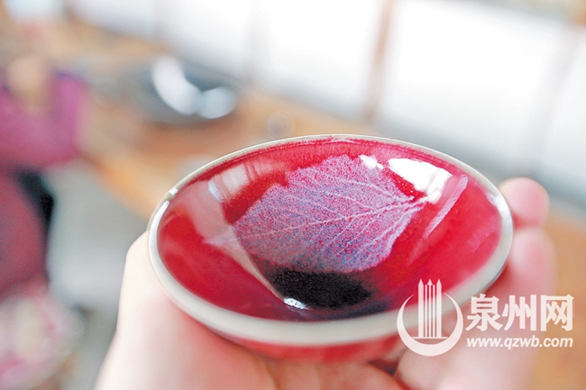 特意從日本帶來的樹葉,為建盞定制花紋。
