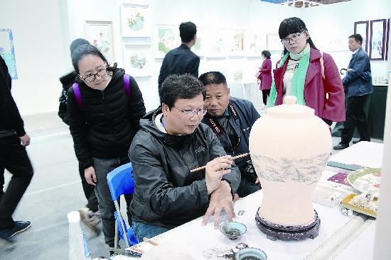 4月22日恰逢周日,下了一天的雨沒有擋住市民到文展會上參觀的腳步。當天下午的魯臺會展中心人頭攢動,陶瓷大師精品展展區(qū)人氣頗高。工藝大師現(xiàn)場為陶瓷進行釉上彩,精湛的技藝讓圍觀市民嘆為觀止,連連叫好。