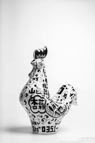 去年,郭超做了一款陶瓷雞,除了青花和纏枝紋,其它所有元素都和山西相關(guān),比如,他加入了一些山西的品牌符號“六味齋”“杏花村”“王萍面皮”“FM107”等,還加入了“鬧他”等山西俚語。之所以想做這樣一款陶瓷雞,一是為了好玩,二是因?yàn)楣巧轿魅,想做一只形式比較新穎的“山西雞”。同年,山西省第三屆文博會在太原舉辦,郭超還帶著他的“山西雞”去參加展覽,前來參觀的人都表示這只雞很有意思,“一看就是山西的雞,身上有那么多山西元素”。