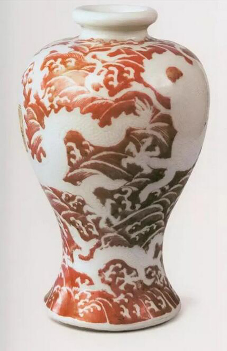 頤和園藏康熙青花釉里紅暗刻龍紋梅瓶