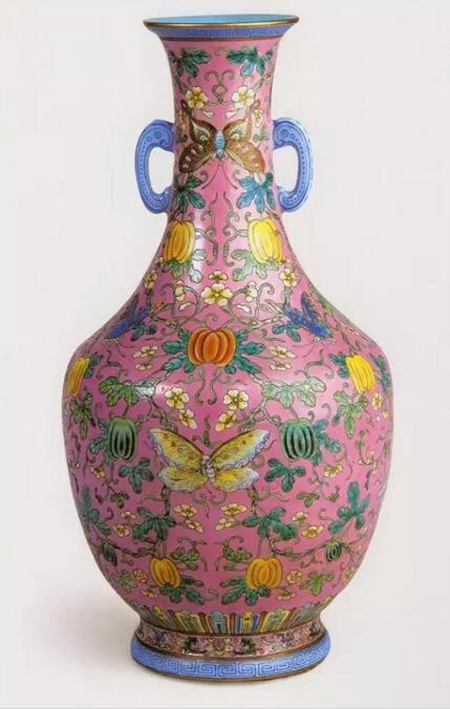 頤和園藏乾隆粉彩瓜瓞紋如意耳瓶