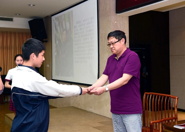 一月前,劉勁松大師來校收徒的消息在校園傳開,應者如潮。學校從眾多報名者中遴選出10位學生進入復試;復試考核由大師命題監(jiān)考,通過考核學生白描技能,觀察坐姿、握筆姿勢和勾線效果,選出7位學生分批進行面試,并進行一段時間的實習實訓考核;最終陳雯等6位同學得到認可,成為國大師的弟子。