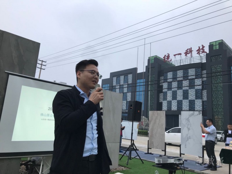 作為東道主,統(tǒng)一陶瓷行銷處總經(jīng)理陳世偉首先作《佛山展后話大板》的主題分享。