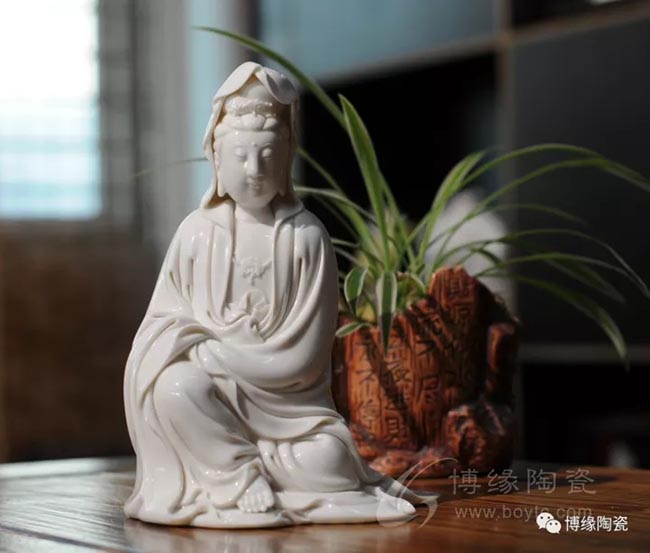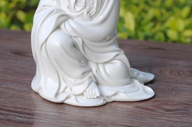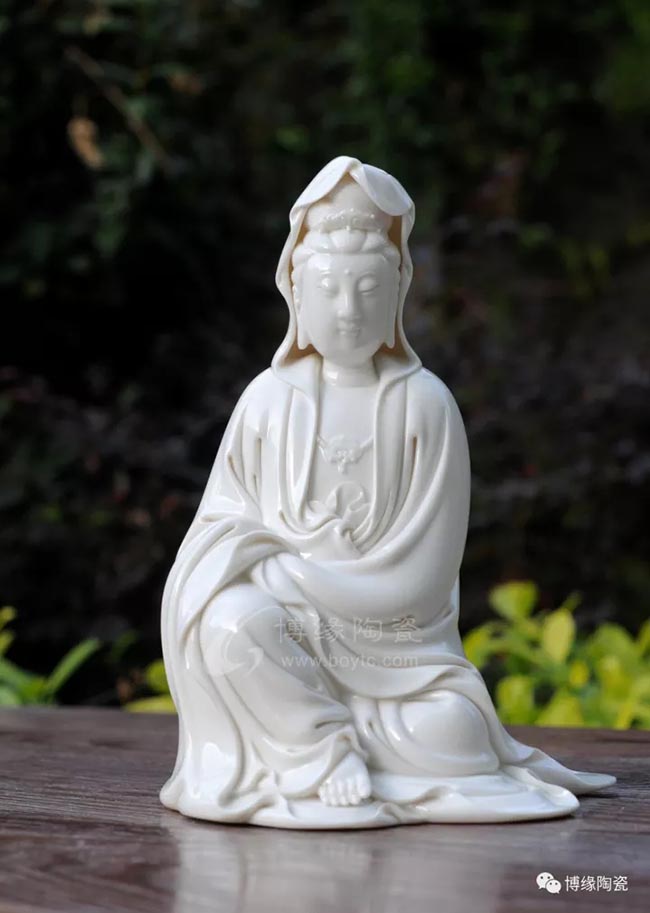 何派觀音雕塑注重于細(xì)節(jié)之美,精益求精,故而十分著意衣紋的刻畫,使線條流暢,翻轉(zhuǎn)自然。觀其佛像,仿佛有春風(fēng)拂面,衣袂飄揚(yáng)的出塵之感。而今德化陶瓷觀音作品,在繼承前人優(yōu)秀技法和何派風(fēng)格的同時(shí),不斷創(chuàng)新發(fā)展,賦予作品新的現(xiàn)代生活氣息,使作品更加貼近生活。