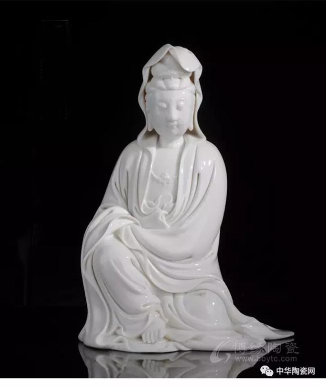 何朝宗善于繼承吸收泥塑,木雕,石刻等其它各種相關(guān)藝術(shù)的創(chuàng)作手法,并結(jié)合到自己的藝術(shù)創(chuàng)作中,既師古而不泥古,總結(jié)出了捏、塑、雕、鏤、貼、接、推、修的八字技法,形成了獨(dú)樹一幟的“何派藝術(shù)”,其中《披坐觀音》是“瓷圣”何朝宗觀音作品中的一款經(jīng)典之作。