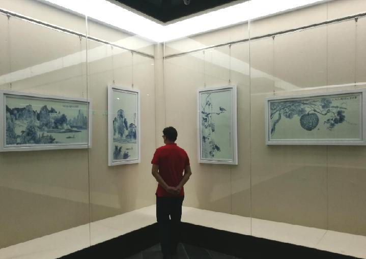 本次展出的瓷畫作品,是馬光耀從國畫中尋找文化精神、表現(xiàn)技法,來表現(xiàn)其頗為獨道的筆情墨趣。馬耀光的作品題材廣泛山水,花鳥,人物無不涉獵。有工、有寫、有巨制、也有小品。表現(xiàn)形式也多樣,新彩、粉彩、青花一應俱全,尤擅青花。馬耀光在青花方面自有獨到之處,他可把青花料用到極致,發(fā)出墨彩,讓觀者感受到料質的奇妙變化。馬耀光的青花作品在光澤、潤韻、層次、彩暉方面有過人之處,特別耐人尋味。馬光耀的老師郭汝愚說,“我相信他構圖的多樣,題材的廣泛,色彩的水潤與光澤,將會給觀者留下深刻的印象。”