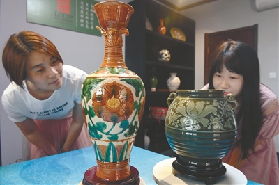 說自己的經(jīng)歷,孫天舒很動(dòng)情感:“很多人說我選擇了一條最難的路,的確與泥料為伴的日日夜夜中,我經(jīng)歷了常人難以忍受的苦。”經(jīng)過一番努力,孫天舒在關(guān)濤教授指導(dǎo)下,根據(jù)遼瓷斷代前的造型工藝,恢復(fù)出制瓷工藝的流程,包括練泥、拉坯、印坯、利坯、曬坯、刻、劃、剔、素?zé)、點(diǎn)彩、施釉、釉燒等。在造型方面,依據(jù)契丹族遼瓷的獨(dú)有器型,進(jìn)行1:1等比例恢復(fù),包括鳳首瓶、皮囊壺、寶葫蘆、交頸鴛鴦壺、雞腿壇、摩羯壺、魚形壺、馬蹬壺等。“做一批作品需要三四個(gè)月,幸運(yùn)的話能出一件成品,有時(shí)候幾百件里出一件,可謂‘百里挑一’。”