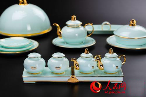 不僅如此,所有的器皿需要經(jīng)過(guò)原料精選、煉泥、成型 、精修坯、素?zé)、拋光、施釉、釉燒、描金、彩烤?0余道精細(xì)的工序,以此打造國(guó)瓷的最高品質(zhì)。“此次呈獻(xiàn)給上合青島峰會(huì)各國(guó)元首的華青瓷‘千峰翠色’ 彰顯了當(dāng)代制瓷科技新高度。”蘇同強(qiáng)說(shuō)。