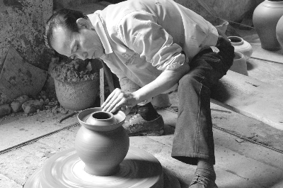 走進梁先才的工作室,我們看到一位精神矍鑠的老人正在專注地工作。工作室中央一個高2.8米、直徑1.8米的陶罐是梁先才為安陶小鎮(zhèn)量身定做的,從拉坯到成型,足足用了兩個月時間。