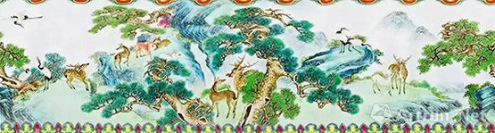 此瓶瓶身繪鹿鶴壽松,寓意福壽康寧:九只祥鹿及五只丹頂白鶴,置嶙峋奇石,古松競(jìng)奇,遠(yuǎn)處山峰煙霧彌漫,畫(huà)師卓藝可見(jiàn)。紋飾相近之瓶,僅見(jiàn)一例,現(xiàn)收錄于巴黎吉美博物館,較此瓶之器形紋飾,雖有異曲同工之妙,但裝飾手法相異。清朝年間,御花園苑飼養(yǎng)鶴鹿,供皇帝玩賞,而本瓶所繪風(fēng)景,極有可能為乾隆御花園實(shí)景寫(xiě)照。鹿,通祿,為壽星坐騎,而鶴則代表長(zhǎng)壽,仙人多乘鶴。靈芝珍稀,只長(zhǎng)于仙島。