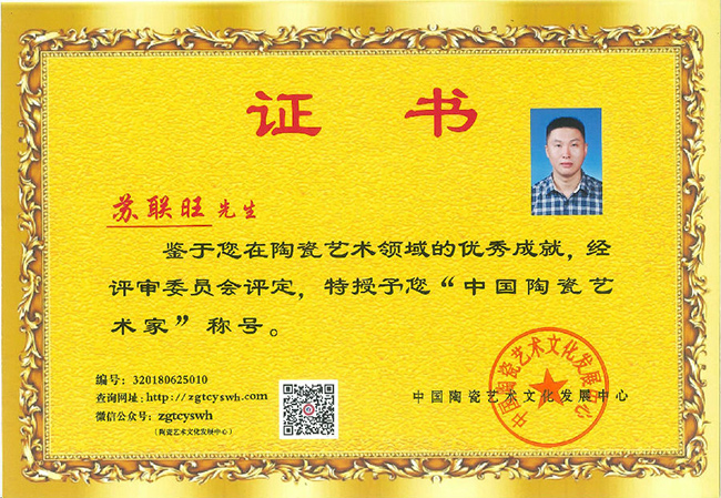 蘇聯(lián)旺榮獲“中國陶瓷藝術(shù)家”稱號