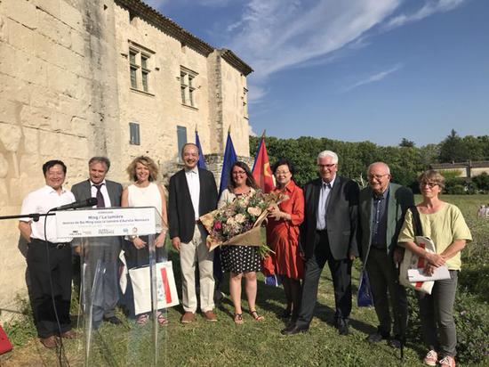 聯(lián)合國(guó)教科文組織法國(guó)全委會(huì)主席 Jean Audouze (歐度茲先生)、阿爾卑斯-上普羅旺斯省副議長(zhǎng)Brigitte Reynaud女士、阿爾卑斯-上普羅旺斯省副議長(zhǎng) Clotilde Berki女士、阿爾卑斯-上普羅旺斯省議長(zhǎng) René Massette先生,出席開(kāi)幕式的其他嘉賓包括民生美術(shù)館館長(zhǎng)周旭君女士、Mane市長(zhǎng) Jacques Despieds先生和前塞努奇博物館館長(zhǎng)清水女士,其中有五位和藝術(shù)家白明依次發(fā)言,共同談到白明作品及此次的價(jià)值與意義。