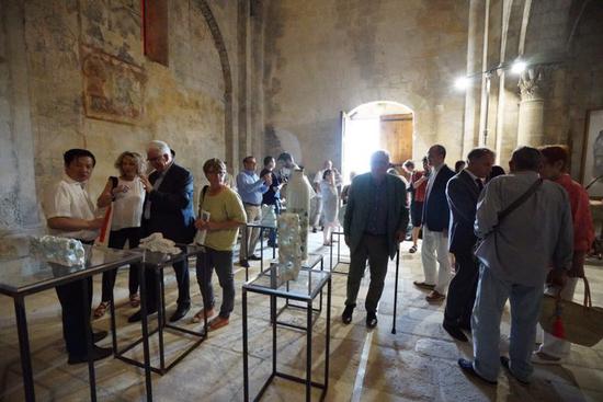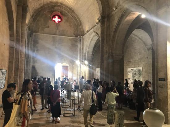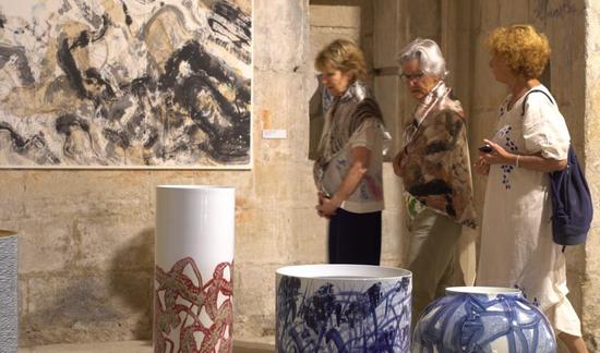 這次展覽是西方教堂與中國(guó)傳統(tǒng)的青花瓷器、抽象的水墨繪畫(huà)相互映襯:白與紅,溫潤(rùn)與灼燒,釉里紅與青花,空間與繪畫(huà),讓東方的歷史與當(dāng)代,中國(guó)的傳統(tǒng)與當(dāng)下,東方與西方,全部都凝聚于這一空間里。這個(gè)展覽不僅吸引了大量的觀眾,同時(shí)受到了普羅旺斯文化和藝術(shù)界的關(guān)注,此次展覽開(kāi)幕是由展覽策展人、薩拉貢博物館館長(zhǎng)伊莎貝拉女士主持,參加此次開(kāi)幕由來(lái)自法國(guó)重要文化官員及相關(guān)人士。