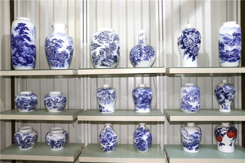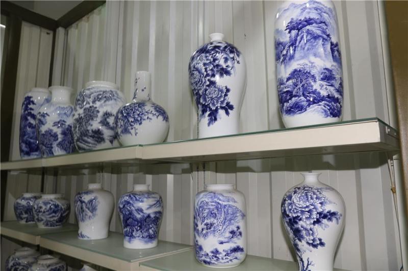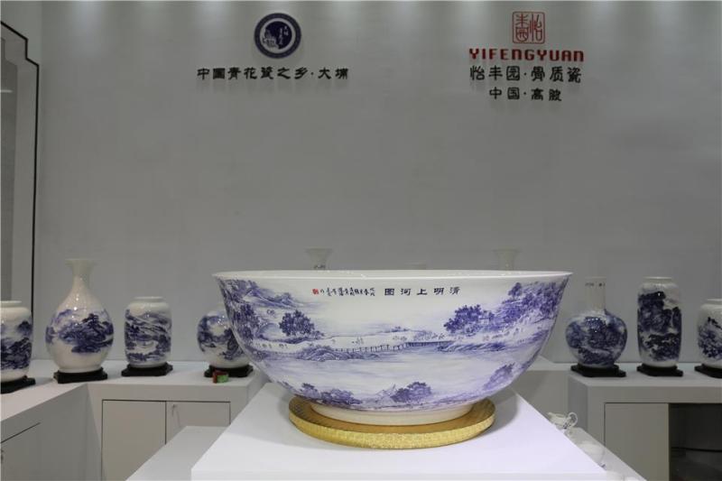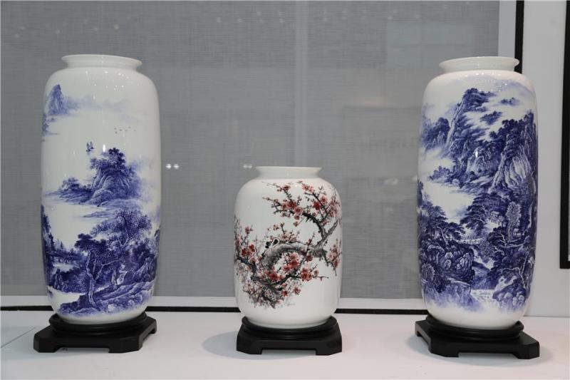 怡豐園實業(yè)公司展示的純手工彩繪高端青花骨質(zhì)瓷花瓶系列