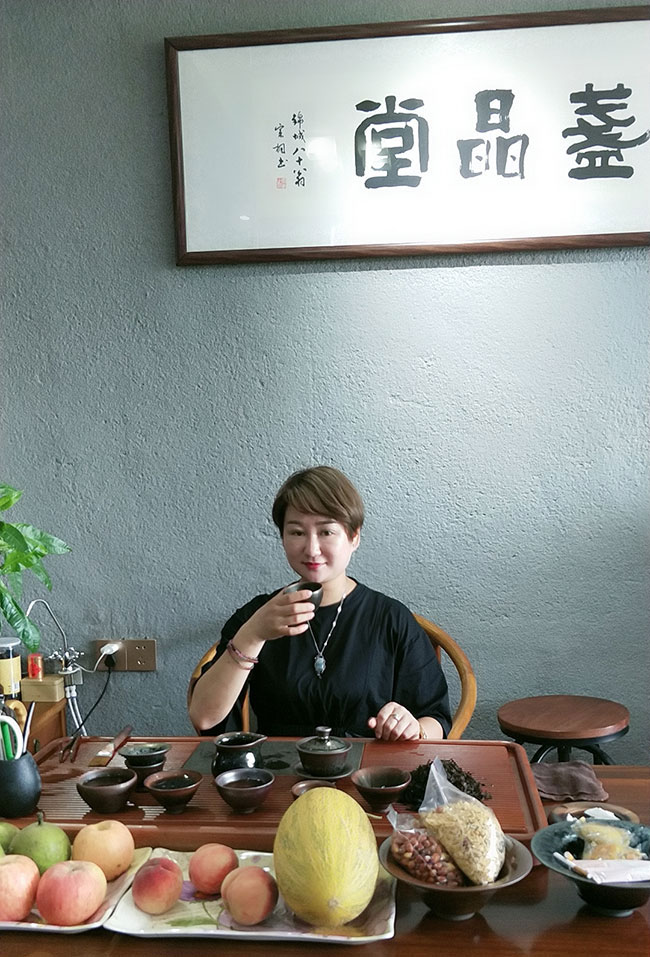 郭豫湘,女,1985年出生。中國青年陶瓷藝術(shù)家、高級工藝美術(shù)師、建陽區(qū)水吉鎮(zhèn)盞晶堂建盞陶瓷工作室藝術(shù)總監(jiān)。2003年畢業(yè)于福建農(nóng)林大學(xué)陶瓷專業(yè)。主要從事研究恢復(fù)失傳800年之久的宋代八大名窯之一建窯龍窯柴燒建盞。從事龍窯柴燒建盞藝術(shù)創(chuàng)作15年,先后開發(fā)出原礦黑釉、兔毫、國寶油滴、鐵銹斑、灰被等系列作品。作品瓷胎似鐵,釉色古樸典雅,釉面斑紋自然形成,內(nèi)含晶體變幻莫測,與宋代古盞形似神更似,以質(zhì)樸的美感,具有典型的建窯特征,作品深得業(yè)內(nèi)和海內(nèi)外收藏家以及藝術(shù)愛好者的青睞和好評。作品“仿宋建窯紫金敞口盞”、“仿宋建窯茶末斂口盞”、“ 鐵銹斑腰鼓盞”被多家博物館和工藝美術(shù)館收藏。