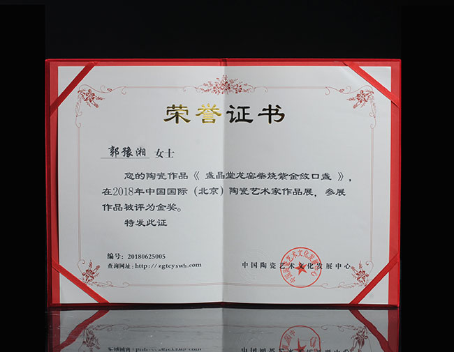 作品《盞晶唐龍窯柴燒紫金斂口展》榮獲北京陶瓷藝術(shù)作品展金獎