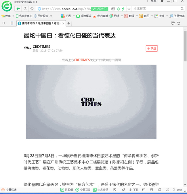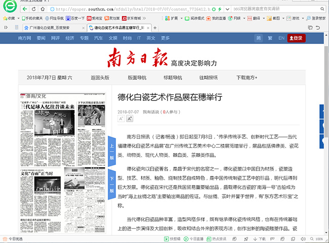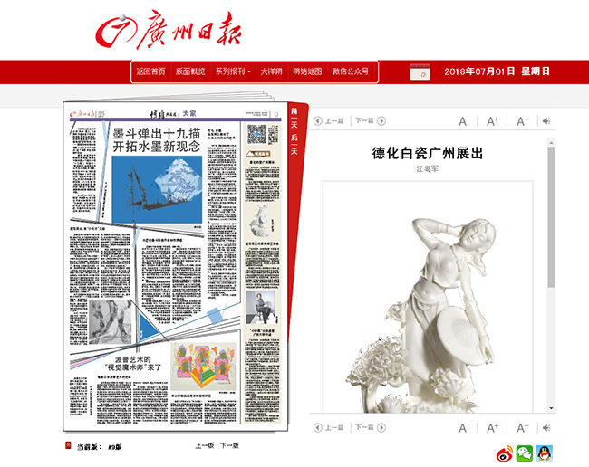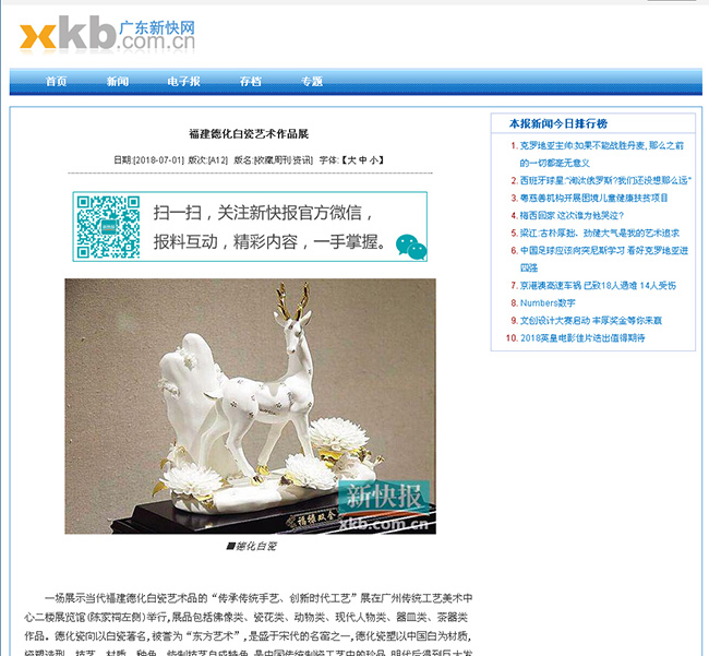 此次展覽得到了廣州日報(bào)、廣州電視臺、南方日報(bào)/奧一網(wǎng)、廣州荔灣發(fā)布(區(qū)委宣傳部)、南方都市報(bào)、新快報(bào)、廣東文化網(wǎng)、中華陶瓷網(wǎng)、東方頭條、搜狐網(wǎng)、掌中廣視、廣州工美第一福、網(wǎng)易新聞等媒體關(guān)注報(bào)道。